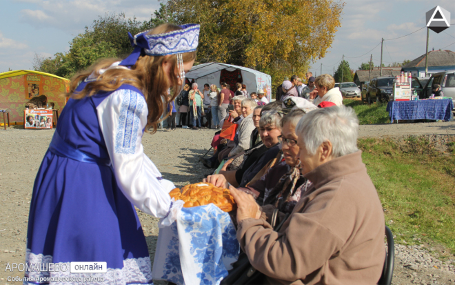 Большое внимание организаторы уделили и чествованию главного атрибута праздника урожая — Его Величеству Хлебу: ароматный свежеиспеченный каравай с солью смогли отведать все гости мероприятия.