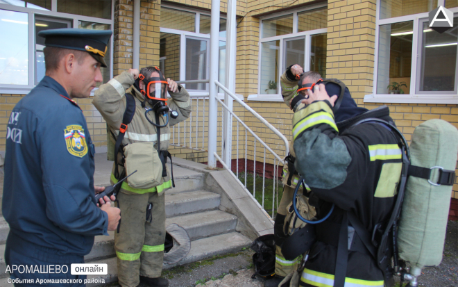 - В рамках учебных планов в Аромашевской школе проводим пожарно-тактические учения. Мы собрались здесь всем составом гарнизона, чтобы отработать практические действия — боевое развертывание, работу звеньев газодымозащитной службы (ГЗДС) в условиях непригодной для дыхания среды. Кроме того, нужно отработать и теоретическое направление по подготовке документации в штабе пожаротушения: провести расчет сил и средств, которые необходимы в тушении подобных объектов на больших площадях. Фактически мы привязываемся к местности, к имеющемуся количеству пожарных единиц и личного состава, даем вводные на увеличение площади, рассчитываем силы и средства для успешной локализации пожара на данной площади с учетом имеющихся сил и средств, - рассказал Сергей Викторович.