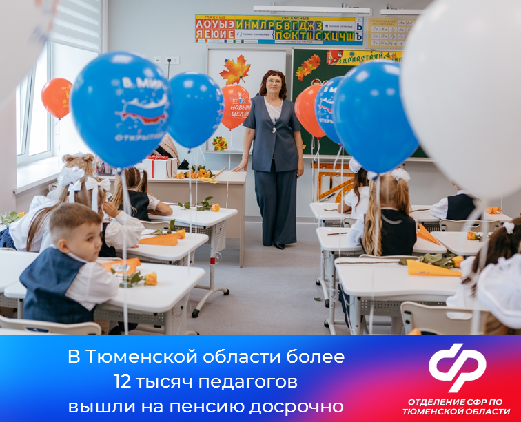 В Тюменской области 12 370 педагогов получают пенсию за свою трудовую деятельность. В преддверии Дня учителя региональное Отделение Социального фонда России поздравляет всех педагогов и напоминает о возможности досрочного выхода на пенсию для тех, кто посвятил себя обучению и воспитанию подрастающего поколения.