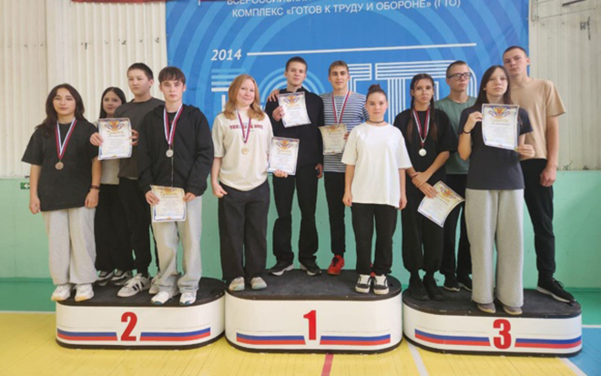 Первым этапом соревнований стала стрельба из положения сидя, где участники опирались локтями о стол. Далее юноши приступили к выполнению норматива по подтягиванию на высокой перекладине, в то время как девушки выполняли сгибание и разгибание рук в упоре, лежа на полу.