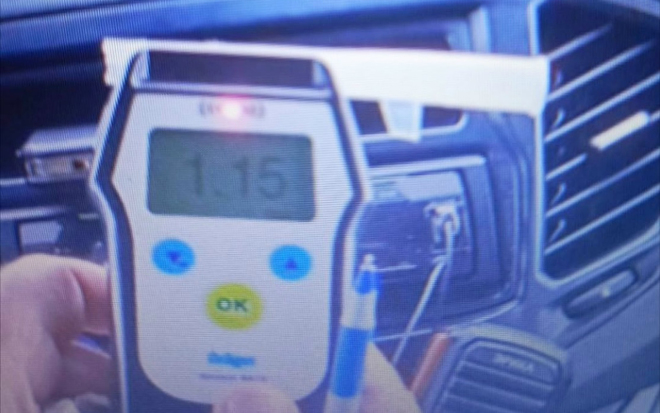 Измерение алкотестера показало 1.15 мг алкоголя на литр выдыхаемого воздуха.