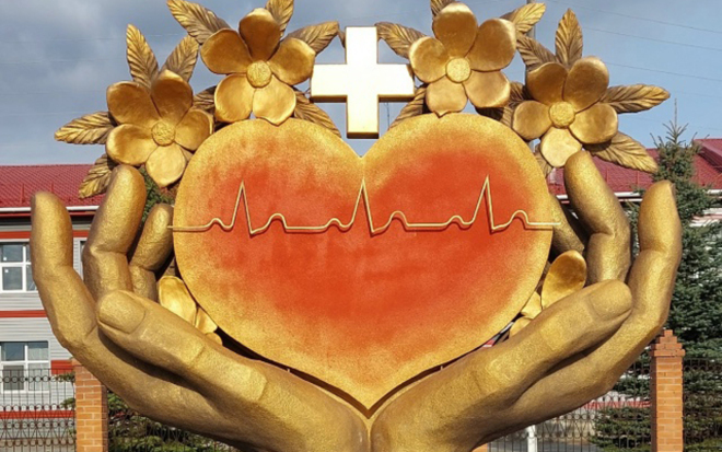 Сердце в руках. Новый арт-объект появился у районной больницы нашего села на улице Строителей, 66.