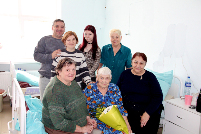 – Работы в больнице тогда хватало, я и помимо основной ничем не гнушалась – куда отправляли, туда и шла. В больнице в то время подсобное хозяйство было, да и отапливалась она дровами, так вот и на покосе жили, и на дроворуб ездили. А ведь и дома большое хозяйство держали: корову, свиней, куриц, огород большой. С мужем, Виктором Ивановичем, прожили 49 лет, двух дочерей вырастили. Он помимо работы ещё и охотником был хорошим, и рыбалку любил. Дочери нам четырёх внуков подарили, а те, в свою очередь, десять правнуков и пока двоих праправнуков. Всех люблю, и они меня не забывают. Вот видишь, на свой юбилей в больницу попала, а они и сюда приехали бабушку поздравлять, – уже с радостью и счастливым блеском в глазах завершила разговор Галина Фёдоровна.