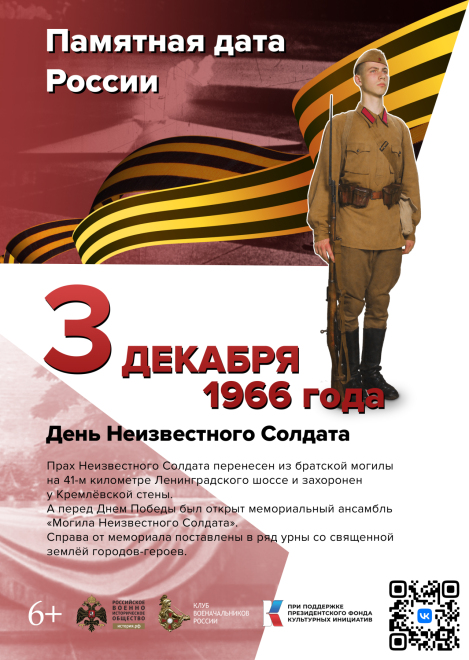 03.12.2025 - 3 декабря 1966 года - День неизвестного солдата