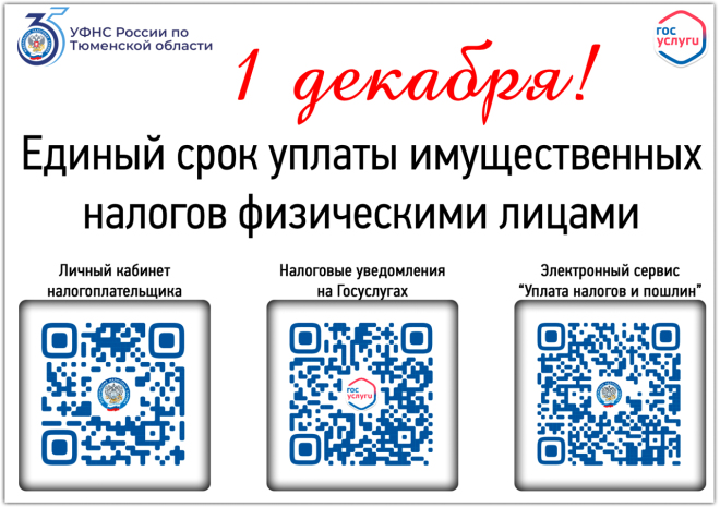 УФНС России по Тюменской области напоминает о сроках уплаты имущественных налогов