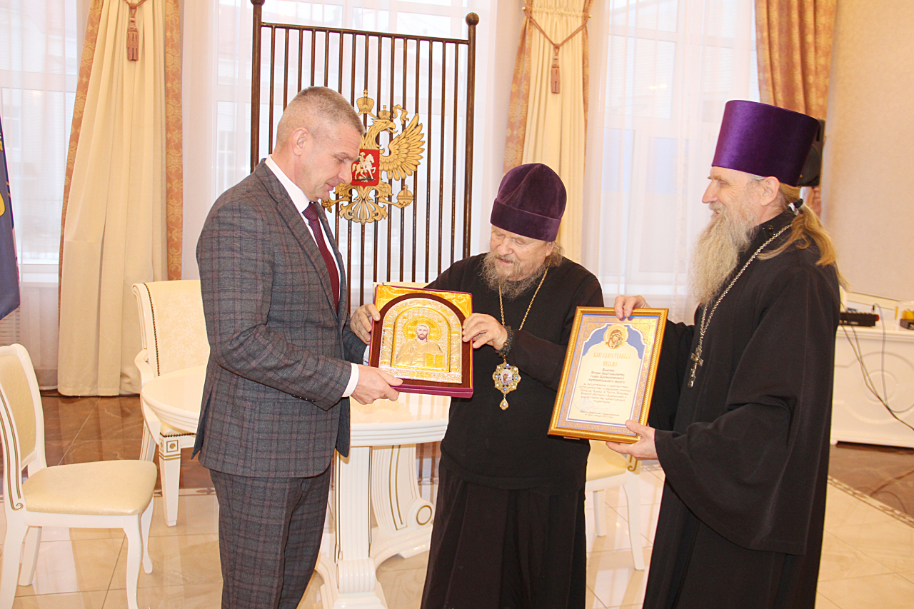 С владыкой и настоятелем храма в честь Покрова Божией Матери села Аромашево иереем Николаем Галочкиным обсудили вопросы развития Русской православной церкви в нашем округе, укрепление духовных и общечеловеческих ценностей, столь необходимых в это непростое время. Было приятно и неожиданно от его преосвященства получить икону с ликом Иисуса Христа и благодарственное письмо за плодотворное и многолетнее сотрудничество.