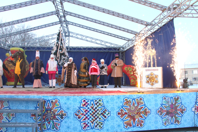 Сказочные персонажи Змеи, Дракона, Зимы и Снеговиков и главный волшебник Дед Мороз со Снегурочкой вовлекали взрослых и детей в праздничное действо. Конечно же, не обошлось без символа Нового года – лошади. Герой русской народной сказки Сивка-бурка всегда приходит на помощь, его вызывают знакомой многим из детства фразой: "Сивка-бурка, вещая каурка, встань передо мной, как лист перед травой". Так и в этот раз это фольклорное выражение звучало со сцены. Иван и Марья взывали к Сивке-бурке помочь сломать три печати холода, которые наложила на ёлочку царица Метель. Злая волшебница заявила детям: