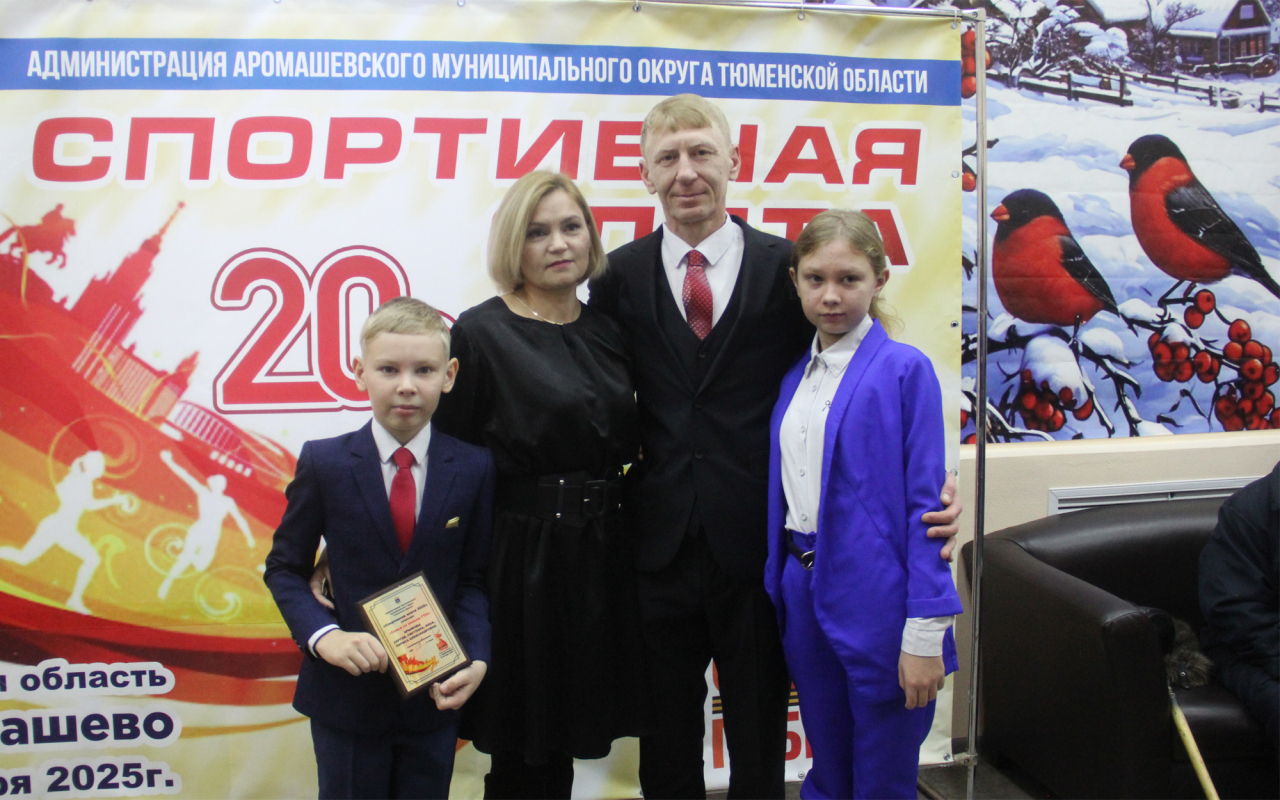 На сцену за наградой поднялась семья Петриных: Дмитрий, Светлана, Артём, которые стали серебряными призёрами районных соревнований среди семейных команд, в копилке у семьи – серебро районного фестиваля ГТО среди семейных команд. Аромашевцы стали участниками финала областных соревнований "Папа, мама, я - спортивная семья". Их глава округа отметил в номинации "Спортивная семья".