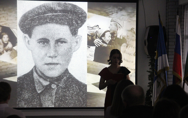 – Подвиг воинов разных времён остаётся неизменным символом мужества и самоотверженности независимо от эпохи. Так в начале специальной военной операции Нурмагомед Гаджимагомедов, прикрывая отступление товарищей, до последнего патрона дрался с врагами, а затем подорвал себя гранатой вместе с окружившей его группой противника. 82 года назад схожий подвиг совершил и наш земляк Сергей Петялин, – рассказала Светлана Ильина и напомнила собравшимся некоторые факты из биографии Героя. – Когда началась война, Сергею было 16 лет, и только в декабре 1943 года он попал на фронт. 30 июня 1944 года, прикрывая отступление товарищей, Сергей автоматным огнём отвлёк на себя около 50 немецких солдат и офицеров. Когда у него закончились патроны, он последнюю гранату подложил под себя. После боя его нашли среди 22 убитых фашистов. За этот подвиг он был удостоен звания Героя Советского Союза посмертно. К 100-летнему юбилею со дня рождения С.В. Петялина Центральная районная библиотека подготовила фильм, который рассказывает о жизни и подвиге молодого парня из сибирской деревни, – сказала ведущая и предложила окунуться в события снятой картины.