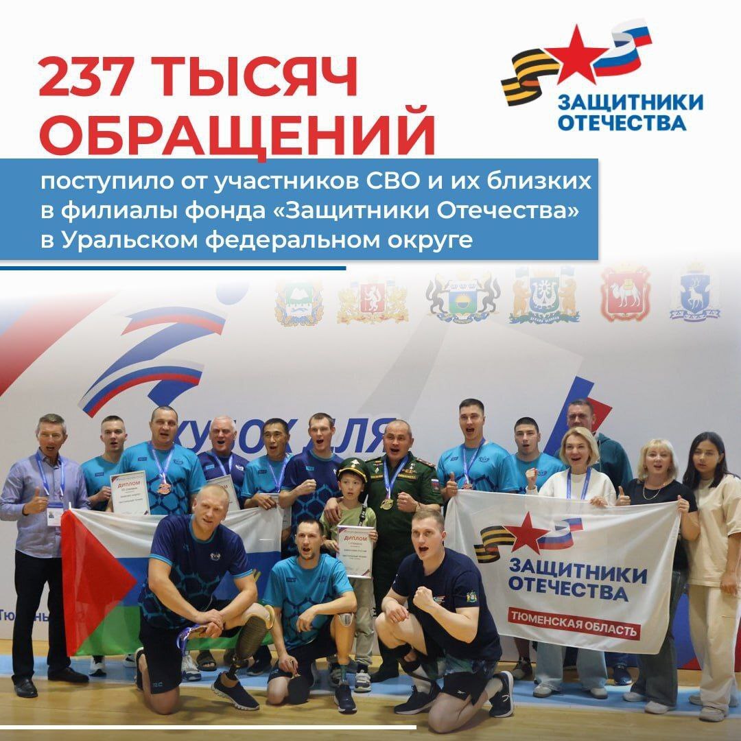 За всё время работы филиалов фонда "Защитники Отечества" в субъектах Уральского федерального округа принято 237 тысяч обращений от участников специальной военной операции и их близких, порядка 98% из них уже решены.