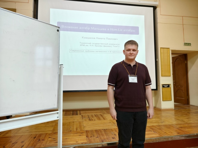 В секции "Алгебра и дискретная математика" он выступил с докладом на тему "Вложение алгебр Мальцева в Hom-Lie алгебры". В своей работе Никита установил связи между двумя классическими алгебраическими объектами, которые представляют собой альтернативные числовые системы.