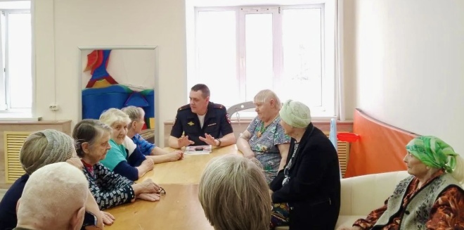 В Тюменской области сотрудники полиции продолжают проводить профилактическую работу по предупреждению преступлений, совершаемых дистанционным путем. Накануне в рамках акции «Стоп мошенничеству!» заместитель начальника полиции (по охране общественного порядка) МО МВД России «Голышмановский» Игорь Хохлов провел профилактическую встречу с пожилыми гражданами, проживающими в Доме ветеранов МАУ «Голышмановский комплексный центр социального обслуживания населения».
