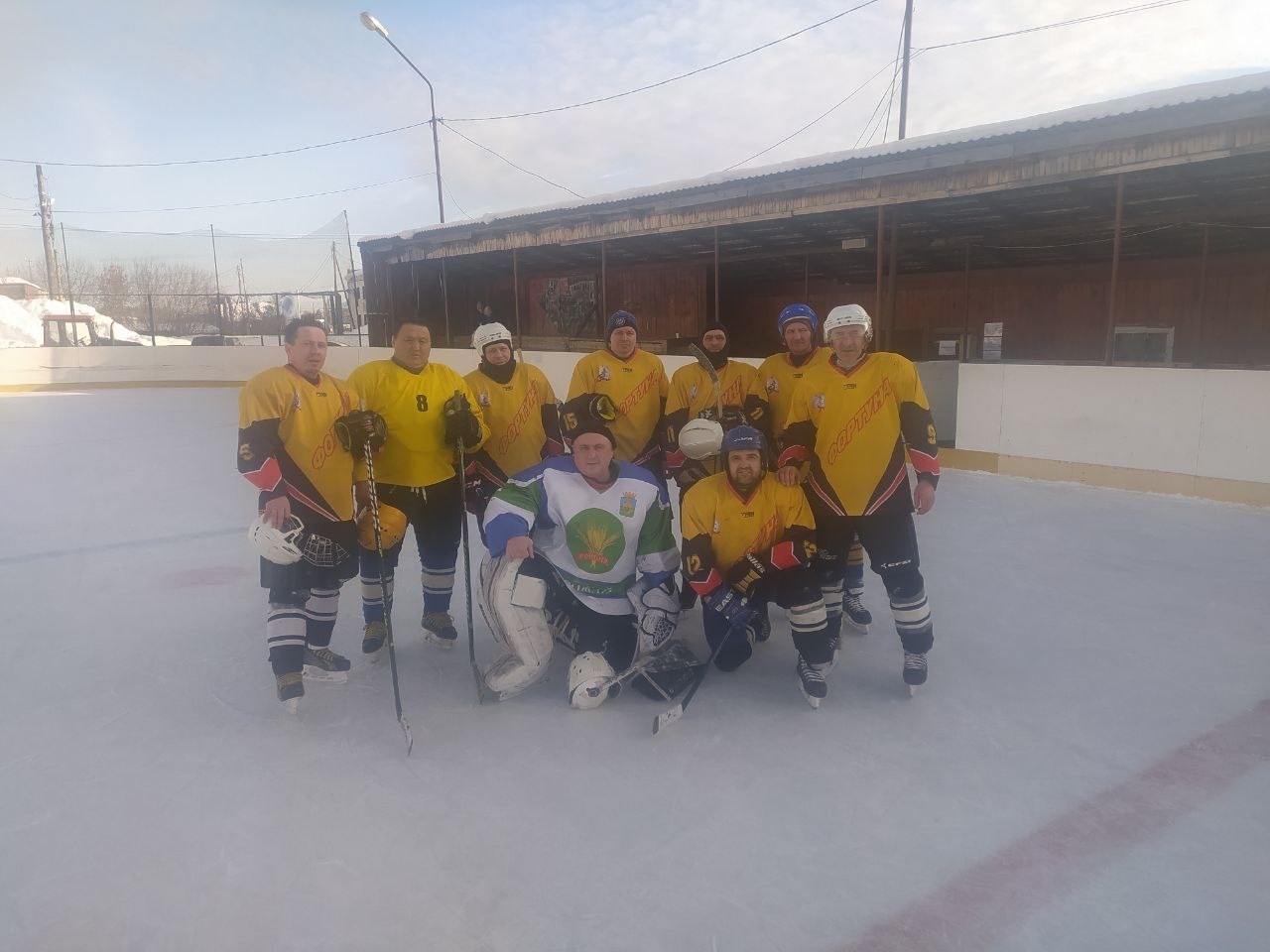 Во второй игре наши спортсмены встретились на льду с ветеранами спорта из Армизона. В ходе игры счет 1:1 держался практически до конца матча. В завершение игры армизонские хоккеисты забросили две шайбы и выиграли со счётом 3:1.