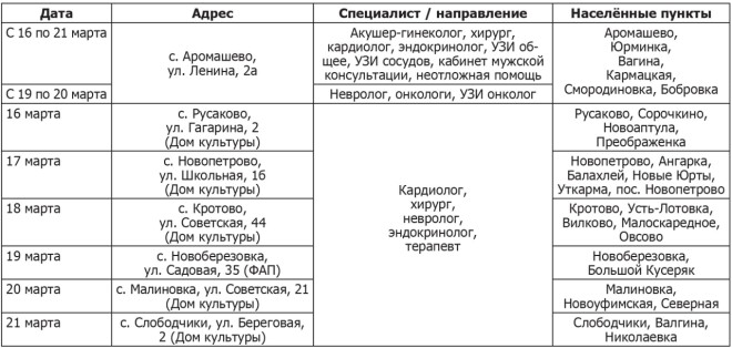 В рамках реализации проекта «Здоровое село» в муниципалитете в период с 16 по 21 марта будут вести прием населения специалисты здравоохранения из областной столицы.