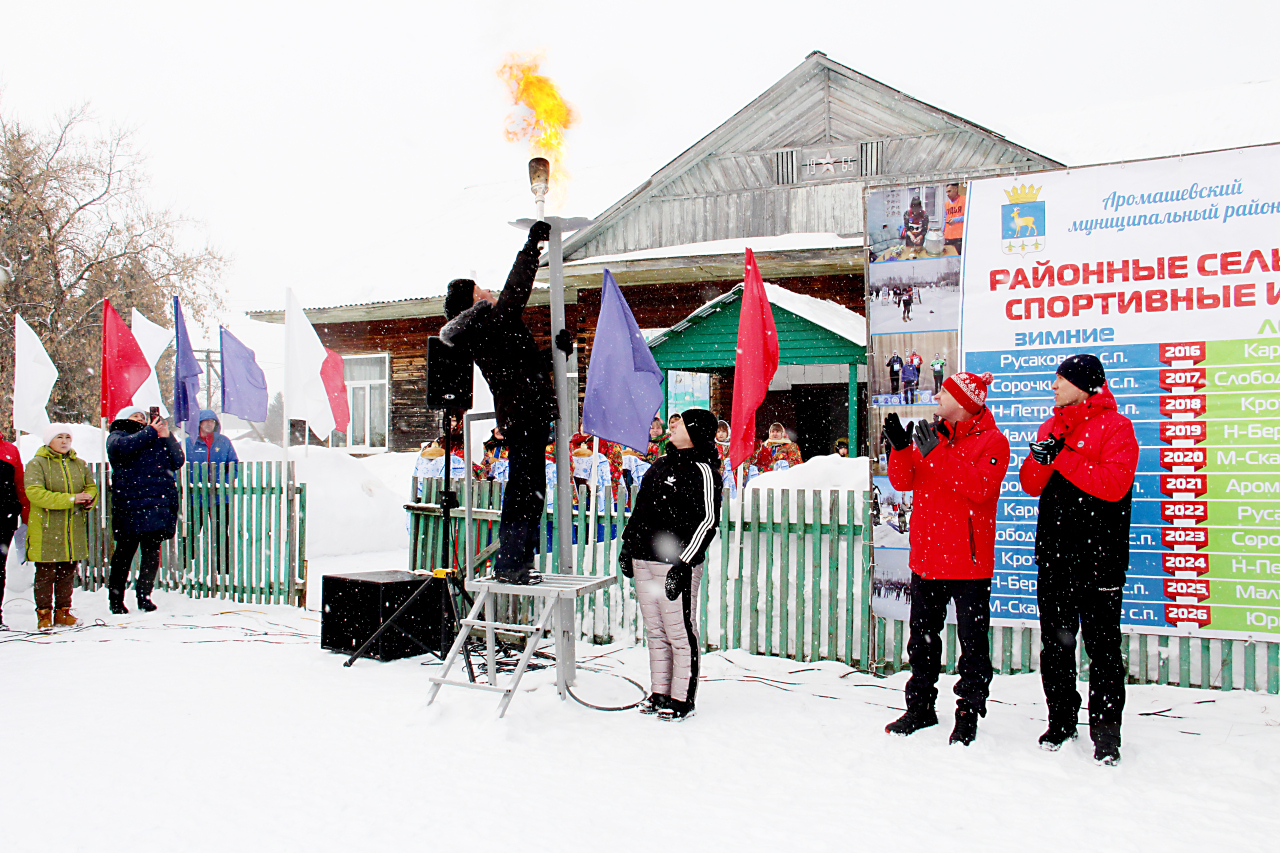 Подобные соревнования не проходят без церемонии зажжения олимпийского огня. Право зажечь его предоставили Екатерине Лавриковой – многократному призёру районной спартакиады среди ветеранов спорта по дартсу, серебряному призёру районных сельских спортивных игр по армрестлингу, многократному призёру районного фестиваля ГТО, участнице фестиваля ГТО среди семейных команд, обладательнице серебряного и бронзового знаков отличия ВФСК ГТО и Айнетдину Хамитову – примеру выдающейся дисциплины, силы воли и активного долголетия, постоянному участнику физкультурных мероприятий, проводимых в селе, наставнику молодых спортсменов территории и бронзовому и серебряному призёру районных сельских игр, обладателю двух золотых и одного серебряного знаков отличия ВФСК ГТО.