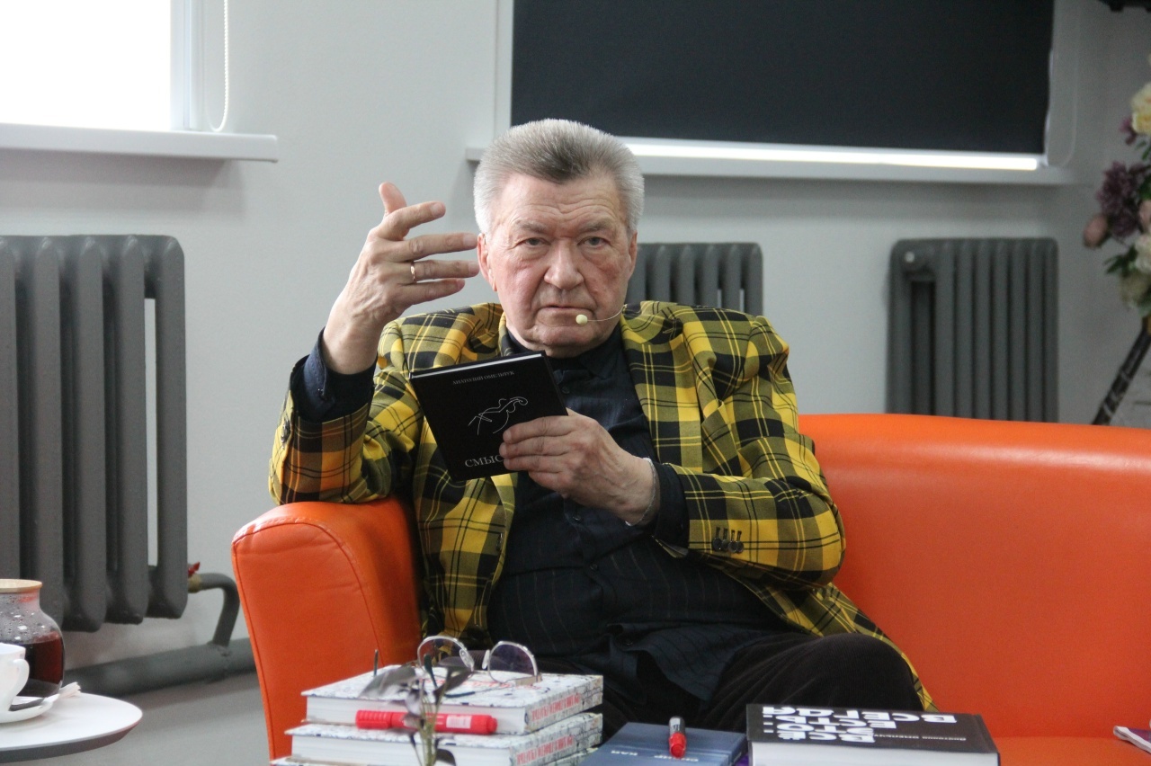 На встрече с читателями Анатолий Константинович Омельчук представил своё новое издание — "Смыслы.семь", которое автор называет "первой попыткой создать книгу будущего".